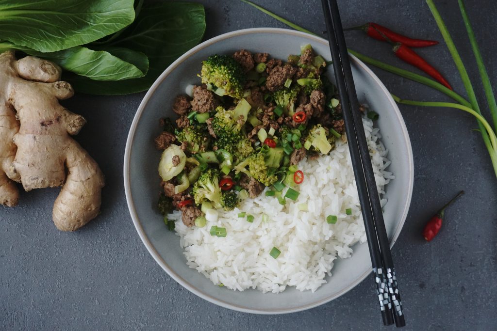 Vietnamesisch inspirierte Hackfleischpfanne mit Reis