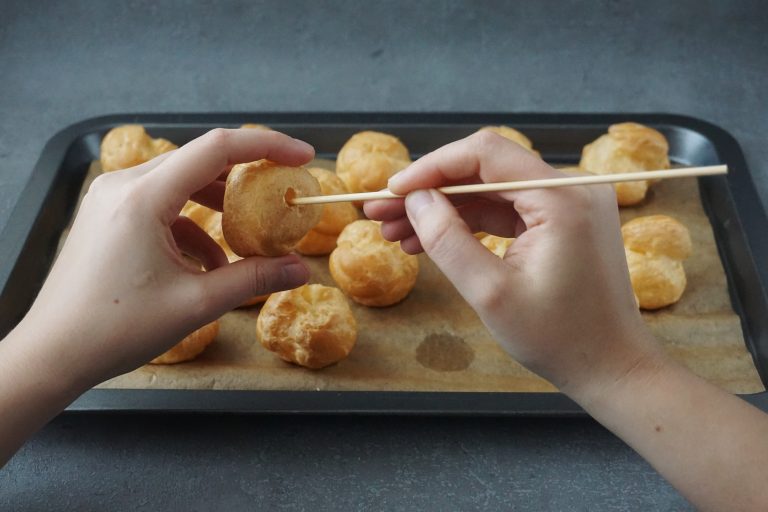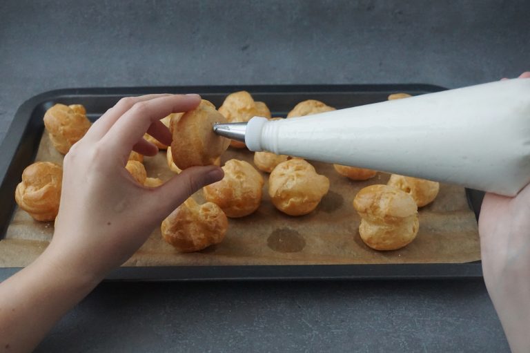 Bei diesem Rezept würde ich auf jeden Fall empfehlen, tatsächlich einen Spritzbeutel mit Tülle zu verwenden. Dabei muss es auch kein teures Set sein – eine abgespeckte Variante mit Tüllen gibt es in vielen Drogeriemärkten schon für wenig Geld.
